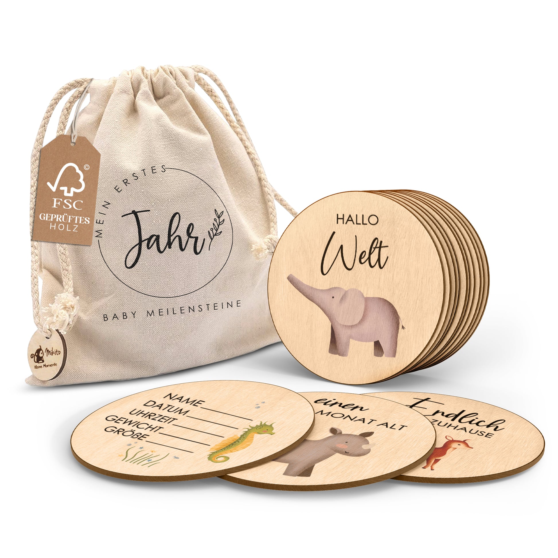 Die ersten Schritte, das erste Lächeln – es gibt so viele besondere "erste Male" im Leben deines Babys. Unsere Baby Holz-Meilensteinkarten helfen dir, jeden dieser magischen Momente stilvoll festzuhalten. Aus hochwertigem Holz gefertigt, bieten sie nicht nur eine wunderschöne Kulisse für Fotos, sondern werden auch zu einem zeitlosen Andenken. Perfekt, um die Geschichte jedes neuen Entdeckens zu erzählen und für immer zu bewahren. 📸💖